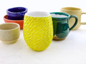 Zdjęcie "Układane ręcznie ceramiczne miski z błyszczącym szkliwem kremowym i brązowym wzorem kropki na neutralnym tle. Minimalistyczny produkt martwa natura podkreślając ceramiki rzemieślniczej, powolne życie i nowoczesny design zastawy stołowej." może być wykorzystywane do celów osobistych i komercyjnych zgodnie z warunkami zakupionej licencji Royalty-free. Obraz jest dostępny do pobrania w jakości wysokiej rozdzielczości do 5760x3840.