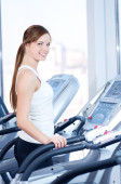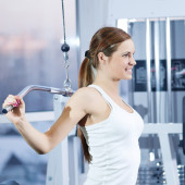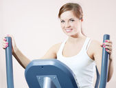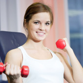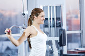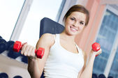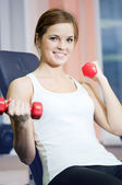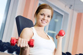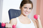 piękne sportowe kobieta robi ćwiczenia z masa hantle