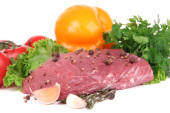 Surowe mięso i warzywa na białym tle na Zielone Świątki?