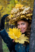 portret kobiety atrakcyjne gospodarstwo jesiennych liści