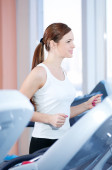 młoda kobieta w biegu na siłowni