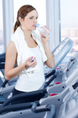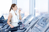 Zdjęcie "młoda kobieta na siłowni, ćwiczenia. napój" może być wykorzystywane do celów osobistych i komercyjnych zgodnie z warunkami zakupionej licencji Royalty-free. Obraz jest dostępny do pobrania w jakości wysokiej rozdzielczości do 5760x3840.