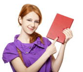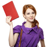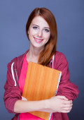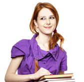 rudowłosa dziewczyna utrzymać książki w ręku. łapka.