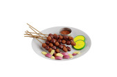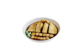 Pierogi na parze rozmieszczone w misce z pikantnym sosem zanurzającym i plasterkami chili