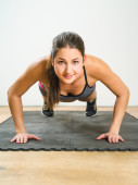 Zdjęcie "zdrowa kobieta co push-up ćwiczenia w domu" może być wykorzystywane do celów osobistych i komercyjnych zgodnie z warunkami zakupionej licencji Royalty-free. Obraz jest dostępny do pobrania w jakości wysokiej rozdzielczości do 5760x3840.
