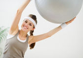 dziewczynka fitness szczęśliwy robi brzucha kryzysu na piętrze