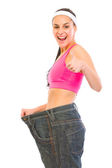 uśmiechnięta młoda dziewczynka palcem wskazującym na apple z taśmy pomiarowe