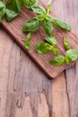 Zielona świeża bazylia na drewniane tła