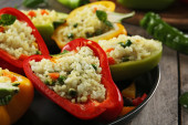 Zdjęcie "Faszerowane papryki z warzywami na stole z bliska" może być wykorzystywane do celów osobistych i komercyjnych zgodnie z warunkami zakupionej licencji Royalty-free. Obraz jest dostępny do pobrania w jakości wysokiej rozdzielczości do 5760x3840.