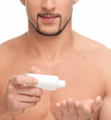 młody, przystojny mężczyzna, stosowanie perfum
