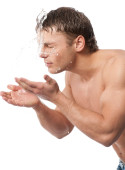 młody człowiek z biały ręcznik. Spa. na białym tle.