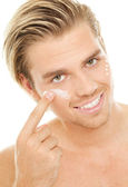 przystojny mężczyzna stosowania mężczyzna krem na twarz