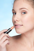 piękna młoda kobieta dorosłych zastosowanie kosmetyczne szminka ołówek