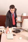 nowoczesne biznesmen stoi w biurze informacji turystycznej i patrząc w puste sc monitory