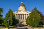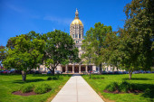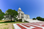 Zdjęcie "Widok z przodu Rhode Island State House z kopułą, otoczony drzewami i porannym światłem." może być wykorzystywane do celów osobistych i komercyjnych zgodnie z warunkami zakupionej licencji Royalty-free. Obraz jest dostępny do pobrania w jakości wysokiej rozdzielczości do 5760x3840.