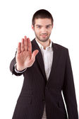 pewnie nowoczesny biznesmen Wyświetlono przystanek gest