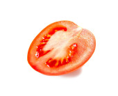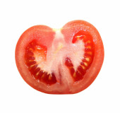 połowa cięcia pomidorów warzyw na białym tle zdrowej żywności