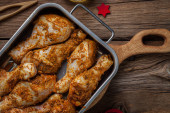 Uda z kurczaka pokryte aromatycznym pocieraniem i przyprawą, pieczone na patelni, gotowe do podania. Soczyste, aromatyczne i idealne na łatwe rodzinne kolacje, tygodniowe posiłki i obfite komfort jedzenia.