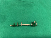 Wysokiej rozdzielczości płaskie zdjęcie ortopedycznych instrumentów chirurgicznych i implantów umieszczonych na sterylnej niebieskiej zasłonie chirurgicznej. Obraz pokazuje płytkę kostną z wieloma złotymi śrubami ortopedycznymi, obok precyzyjnych narzędzi chirurgicznych, takich jak scr