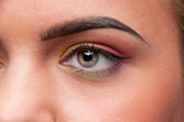 zbliżenie oczu makijaż strefy. fioletowe i złote kolory