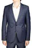 Dorywczo garnitur męskie kolor cyjan spodnie i marynarka, na białym tle.