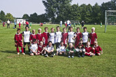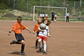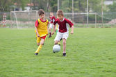 dzieci gry w piłkę nożną w lato na zewnątrz trawa arenie
