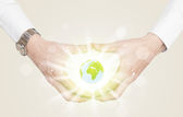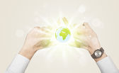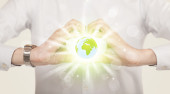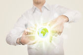 biznesmen gospodarstwa eko wirtualnych znak