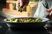 Zdjęcie "Falafel miska z hummusem, awokado, marynowane warzywa i prażona ciecierzyca, zdrowa restauracja Fotografia żywności z rękami trzymając miskę, widok z przodu." może być wykorzystywane do celów osobistych i komercyjnych zgodnie z warunkami zakupionej licencji Royalty-free. Obraz jest dostępny do pobrania w jakości wysokiej rozdzielczości do 5760x3840.