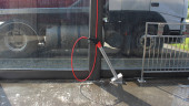Pistolet ciepła umieszczony w pobliżu zbiornika gazu w warunkach zewnętrznych, podkreślający przygotowanie do zadań grzewczych, zapewniający bezpieczeństwo i wydajność pracy