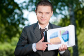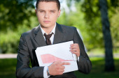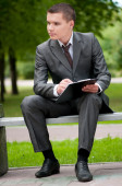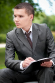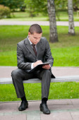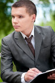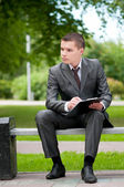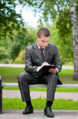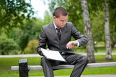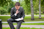 biznes człowiek pracy z dokumentów w parku. uczeń