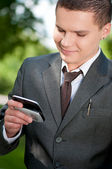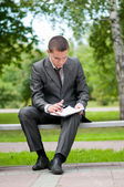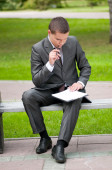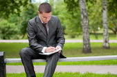 biznes człowiek pracy z dokumentów w parku. uczeń
