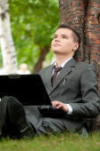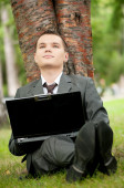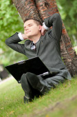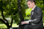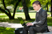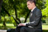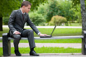 biznes człowiek pracy z dokumentów w parku. uczeń
