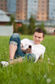 biznes człowiek czeka w parku. zegarek. uczeń