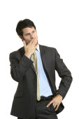 uśmiechający się nowoczesne biznesmen zgłoszenie dobrej nowiny i pokazano kciuki gestu