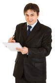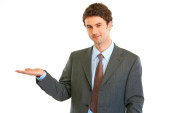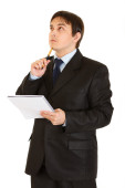 portret poważne nowoczesne biznesmen patrząc w rogu na miejsce