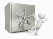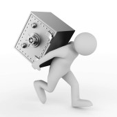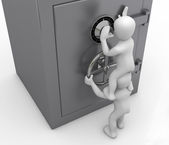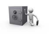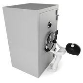 człowiek i sejf na białym tle. na białym tle obraz 3d