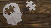White Puzzle w kształcie głowy człowieka psychologii, umysłu i koncepcji inteligencji.