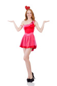 Czerwone wĹ, osy dziewczynie w karnawał kostium na białym tle