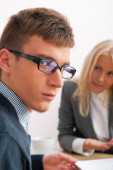 Zdjęcie "młody udany uśmiechający się firmy pracują w ofi" może być wykorzystywane do celów osobistych i komercyjnych zgodnie z warunkami zakupionej licencji Royalty-free. Obraz jest dostępny do pobrania w jakości wysokiej rozdzielczości do 5760x3840.