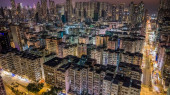 Wieczorny blask miasta podkreśla ruchliwe ulice i wysokie wieże lut 6 2026