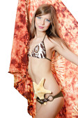 młoda dziewczyna w bikini określa z muszelek