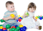 dziewczynka gra wielobarwne kule