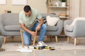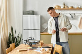 Dżentelmen gra klasyczną grę planszową w przytulnym salonie wypełnionym naturalnym światłem i komfortem.