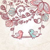 Dwa cute ptaków w dniu miłości. Słodkie Walentynki karty z ptaków
