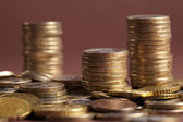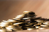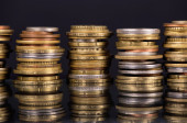 Stosy monet złota na czarnym tle