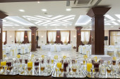 Zdjęcie "Wnętrza sali jadalnej z długich stołach" może być wykorzystywane do celów osobistych i komercyjnych zgodnie z warunkami zakupionej licencji Royalty-free. Obraz jest dostępny do pobrania w jakości wysokiej rozdzielczości do 5760x3840.