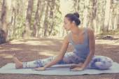 Piękna młoda kobieta medytuje na zewnątrz wiosna lato Park