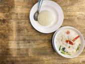 Zdjęcie "Aloo Poha serwowane w czarnej płycie, pokazując żółty spłaszczony ryż ozdobiony ziołami i przyprawami, wewnątrz przezroczystej gablocie w kawiarni" może być wykorzystywane do celów osobistych i komercyjnych zgodnie z warunkami zakupionej licencji Royalty-free. Obraz jest dostępny do pobrania w jakości wysokiej rozdzielczości do 5760x3840.
