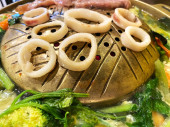 Zdjęcie "Grillowane szaszłyki z kurczaka umieszczone na papierowym talerzu z małą filiżanką sosu do zanurzania i zielonym napojem na stole na tętniącym życiem targu na świeżym powietrzu" może być wykorzystywane do celów osobistych i komercyjnych zgodnie z warunkami zakupionej licencji Royalty-free. Obraz jest dostępny do pobrania w jakości wysokiej rozdzielczości do 5760x3840.