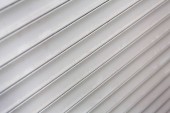 Zdjęcie "Białe drzwi garażowe są pokazane z poziomymi liniami i gładką powierzchnią. Światło tworzy cienie, które podkreślają fakturę drzwi. Dzień wydaje się być słoneczny bez chmur.." może być wykorzystywane do celów osobistych i komercyjnych zgodnie z warunkami zakupionej licencji Royalty-free. Obraz jest dostępny do pobrania w jakości wysokiej rozdzielczości do 5760x3840.